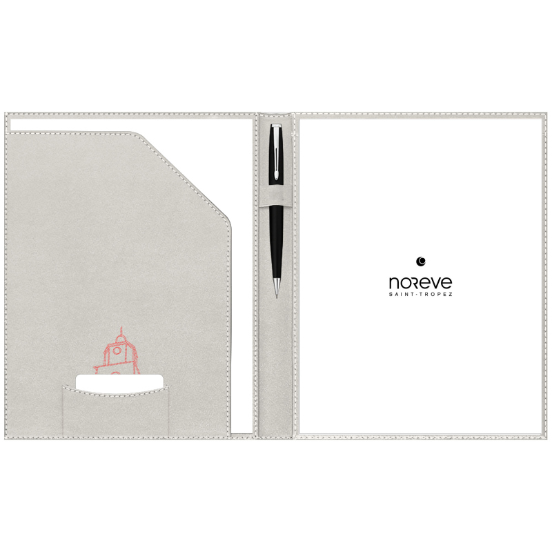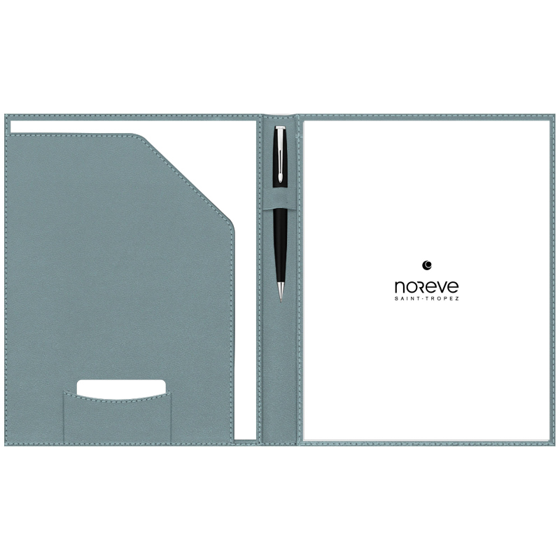 - Eine große Tasche auf der rechten Seite bietet Platz für ein A4-Notizbuch, das nach Gebrauch leicht ausgetauscht werden kann.