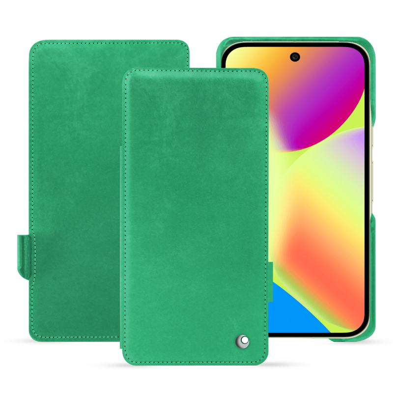 The horizontal flap, a signature feature of this model, offers many advantages in use. It protects the entire front of your Google Pixel 10, including its sensitive screen, while allowing for easy and intuitive opening of the phone. Unlike other systems that use magnets or press studs, the Noreve flap clips delicately onto the side of the device, without any magnetic or metal elements. This technical choice avoids any interference with the phone's electronic components, while ensuring a secure, discreet and elegant closure. Its tailor-made design, adjusted to the nearest millimetre, requires extreme precision and masterful craftsmanship, ensuring a perfect fit and an impeccable feel.