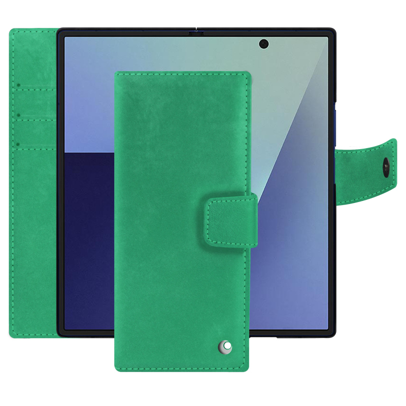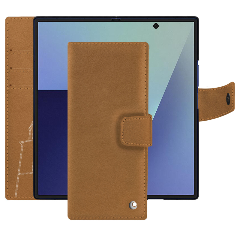 Totalmente hecha a mano por nuestros artesanos del cuero, la funda tipo cartera de Noreve destaca por su excepcional acabado y su diseño a medida. Se adapta perfectamente a la compleja forma del Galaxy Z Fold7, teniendo en cuenta su bisagra central, sus dos pantallas y sus mecanismos internos. Gracias a su diseño inteligente y ergonómico, garantiza un agarre cómodo y un uso fluido, al tiempo que protege completamente el dispositivo contra arañazos, polvo, golpes y roturas.