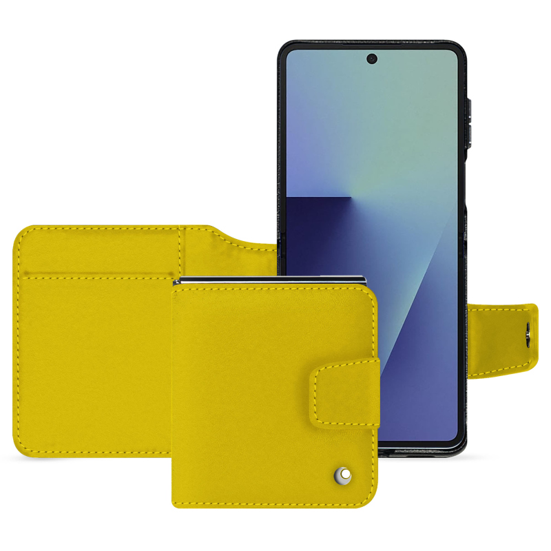 El cierre está garantizado por una lengüeta con botón magnético, discretamente integrada, que mantiene la solapa cerrada de forma segura, sin añadir un grosor excesivo ni alterar la estética general de la funda. Este sistema inteligente permite un manejo rápido e intuitivo del smartphone, al tiempo que garantiza su seguridad, especialmente durante los desplazamientos. Cada funda está ajustada al milímetro, adaptándose perfectamente a las curvas del Galaxy Z Flip7 para un ajuste impecable y una experiencia de usuario fluida.