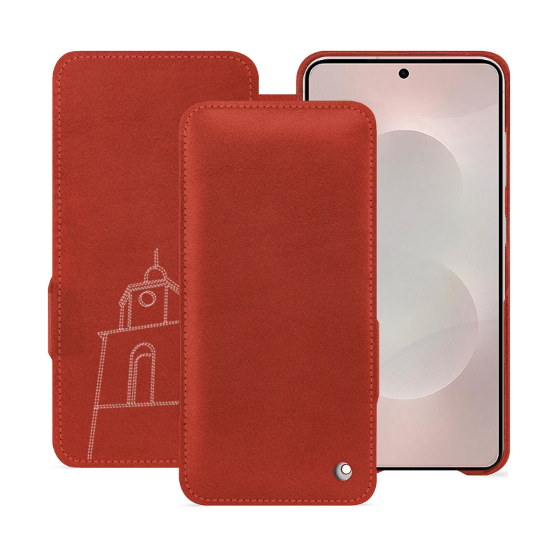 水平フラップは画面を完全に覆い、曲面エッジを保護しながら、スマートフォンのスリムなデザインを損なうことはありません。従来の留め具とは異なり、Noreve のフラップは、磁石や金属製のボタンを使用せずに、デバイスの端に繊細にクリップで留めることができます。このシステムにより、Galaxy S26 Plus のコンポーネントへの干渉を回避しながら、信頼性が高くエレガントな留め具を実現しています。